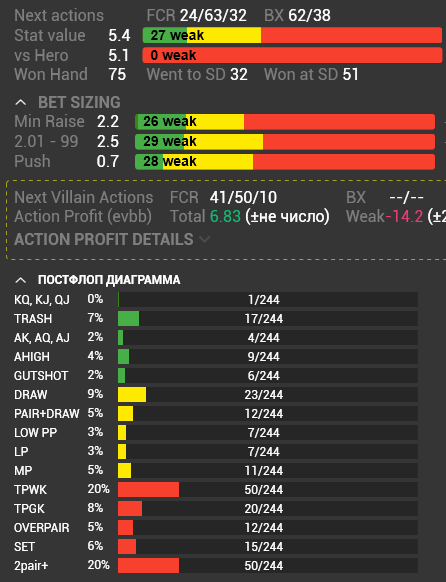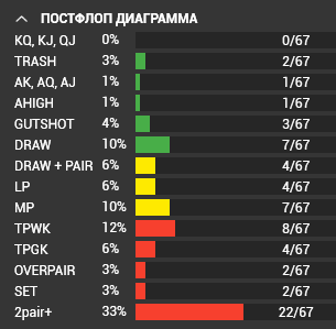 И возникает вопрос в такой ситуации: Что ты хотел побить? Ответ - мало чего, а нам надо, чтобы мы грубо говоря хотя бы 40% эквити имели на тёрне. Ну и конечно же у нас их и близко тут не будет. Поэтому колл плохой.