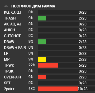 3. Флоп играется от типа фиша. Если это агрессивный, то тогда можно 1/3 или чек и давать ему простор для блефа. И тогда не выкидываем турн 100%.