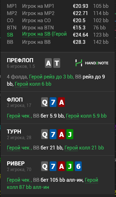 РИВЕР: ФОЛД!!! И тут вновь без вариантов и информации, что он способен превратить в блеф руки по типу , , и типа того, либо же без информации, что он из секты бетаю всегда ривер, когда у меня нет ШДВ. И вот если ты считаешь что он способен ставить всё подряд без ШДВ, по типу , , , то лёгкий колл.