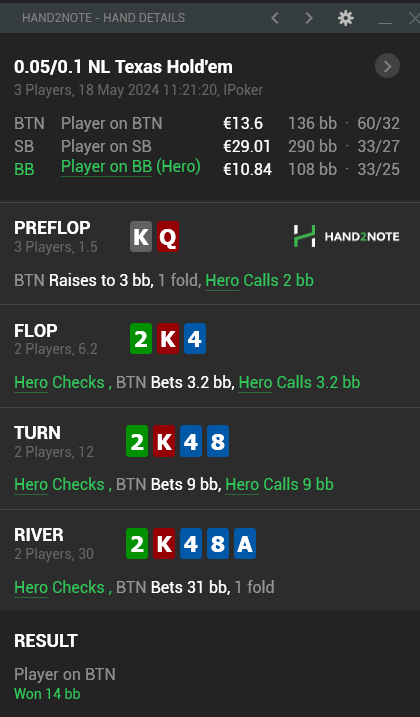 Флоп: 1/2 банкаТёрн: 3/4 банкаРивер: Овербет