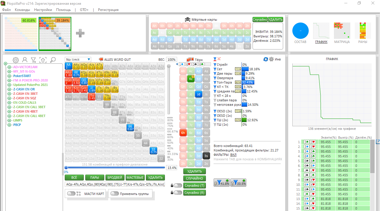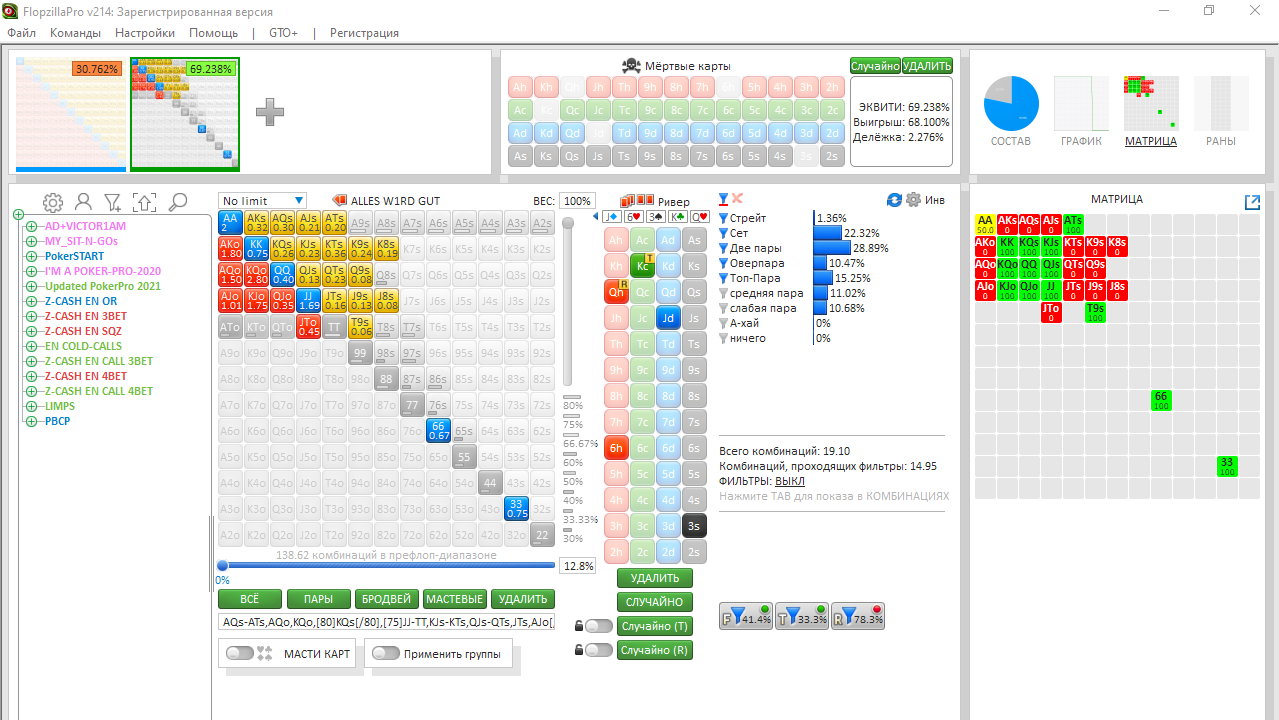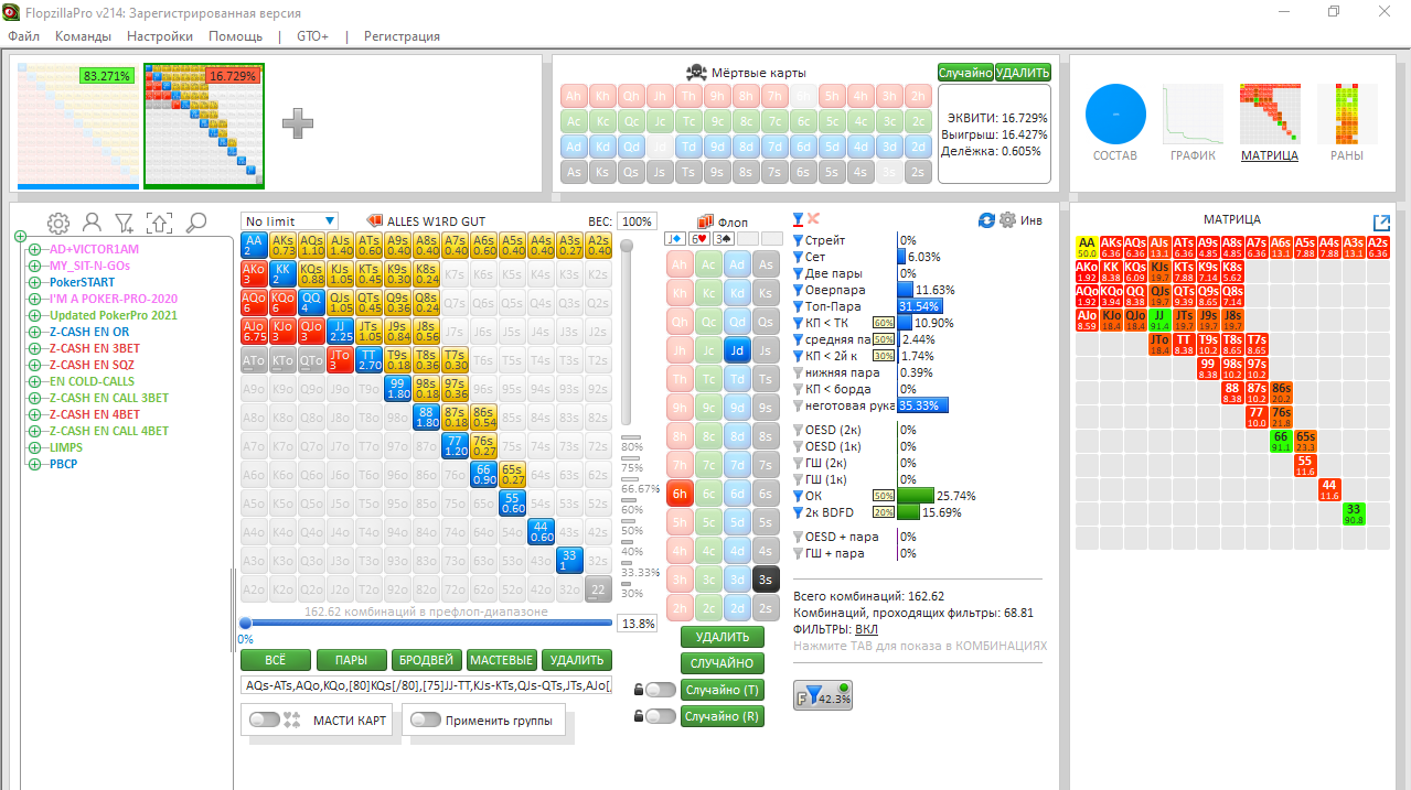 Убогий ран. Доперов+ у рыбы стало миллион. Мы особо ничего не бьём. На скрине неотфильтрованный диап, где руки слабее чем указанные две пары+ уже не ставят даже у фиша (ну почти, кнш), а только чекают и ...