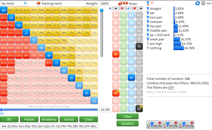 Сыграл слабо так как сыграл против конкретной руки, а нужно играть против диапа. Еще важный момент, фишы склоны слоуплеить натсы, поэтому там больше будет трипсов.
