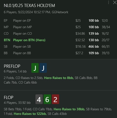 Префлоп. Дэфолт. Флоп. Рейз хорош, у такого фиша много чего может быть. Там могут быть и оверпары слабее, и оверкарты, и совпадения какие то, и дрова. Играть флоп через пассивную линию будет большой ошибкой. Борд динамичный, нас могут переехать на дальнейших улицах, так же при выходе например оверкарт мы можем не получить оплаты и нам будет тяжело собираь при выыходе туза короля.