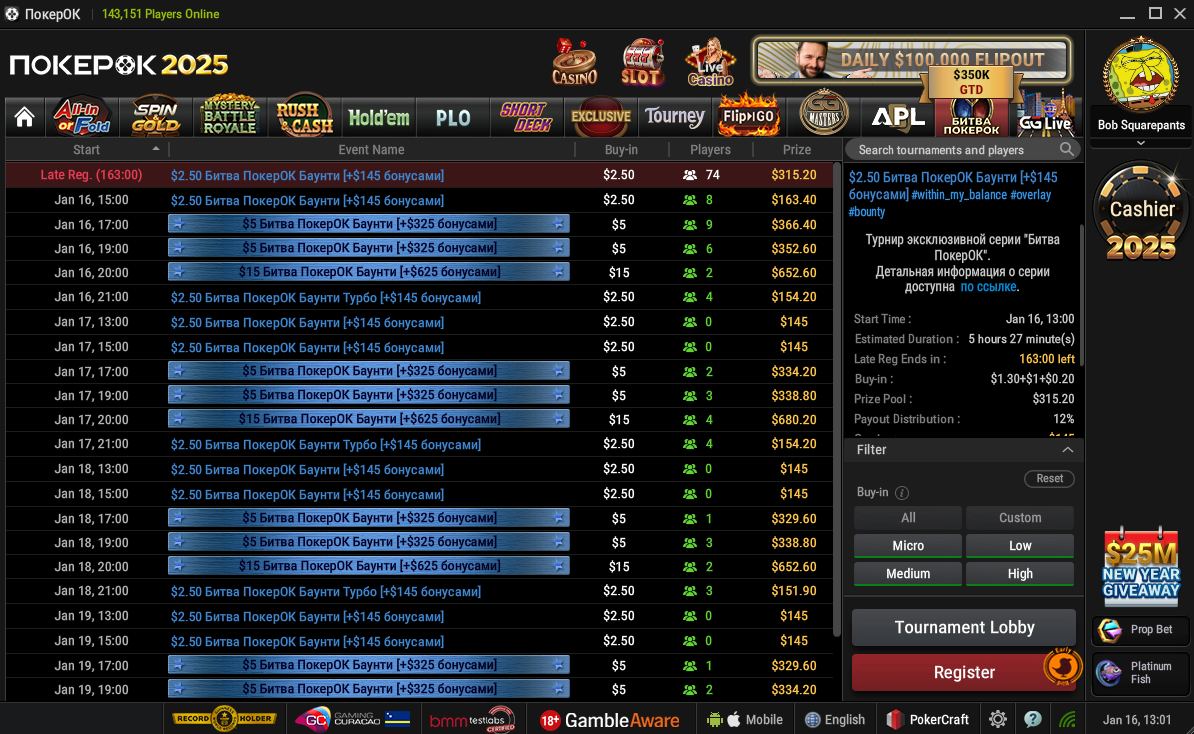 Вы сможете найти сателлиты к оффлайн-событию во вкладке Битва ПокерОК, а также во вкладке Приватный — поспешите принять участие.