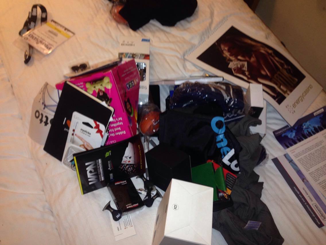 Помимо этого добра, все кто представлялся на LAC2016 со своими стендами – раздавали бесплатный мерчендайзинг в виде маек, наушников, кепок, шарфов, покерных кейсов, кружек, ручек, запонок, хранители бизнес-карточек и массу других вещей. Собственно я не поленился, потратил около часа и набил два мешка различным добром, что давали или можно было взять самому, точнее все самому и можно было брать, но не хотелось наглеть слишком, поэтому всегда спрашивал, а там что уже давали – то и скидывал в мешок :)