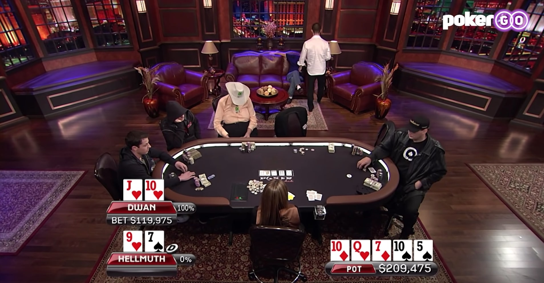 В тот раз Том Дван оказался сильнее Хельмута 1010 > АА, но как и в любом другом противостоянии Фила и Тома не столько интересен сам ход раздачи, сколько словесный «экшен» после. Поверьте, это лучше один раз увидеть.