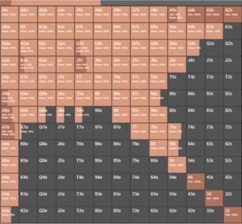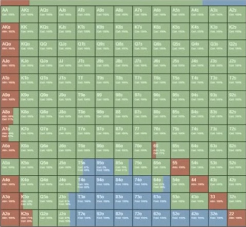 В этой статье я покажу вам GTO-стратегии для нескольких распространённых сценариев за столами 9-макс в МТТ: когда глубина нашего стека составляет 15 ББ, 20 ББ и 25 ББ. Эти стратегии может быть сложно применять на практике, поэтому их нужно упростить, придерживаясь частот, близких к рекомендованным.