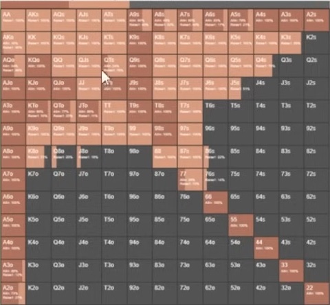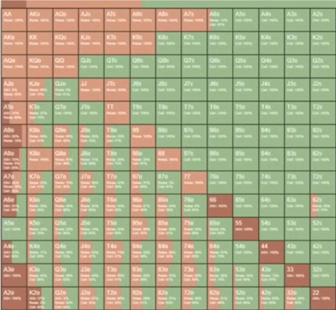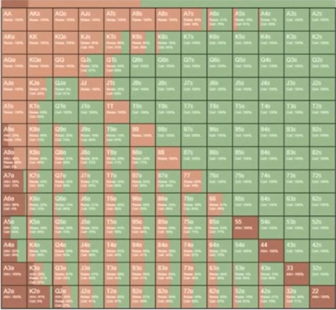 А в глубине 25 ББ у нас вообще не остаётся пушей. Такую стратегию использовать проще всего — просто рейзите те руки, которые рекомендует чарт: