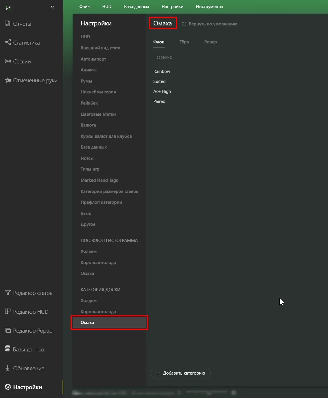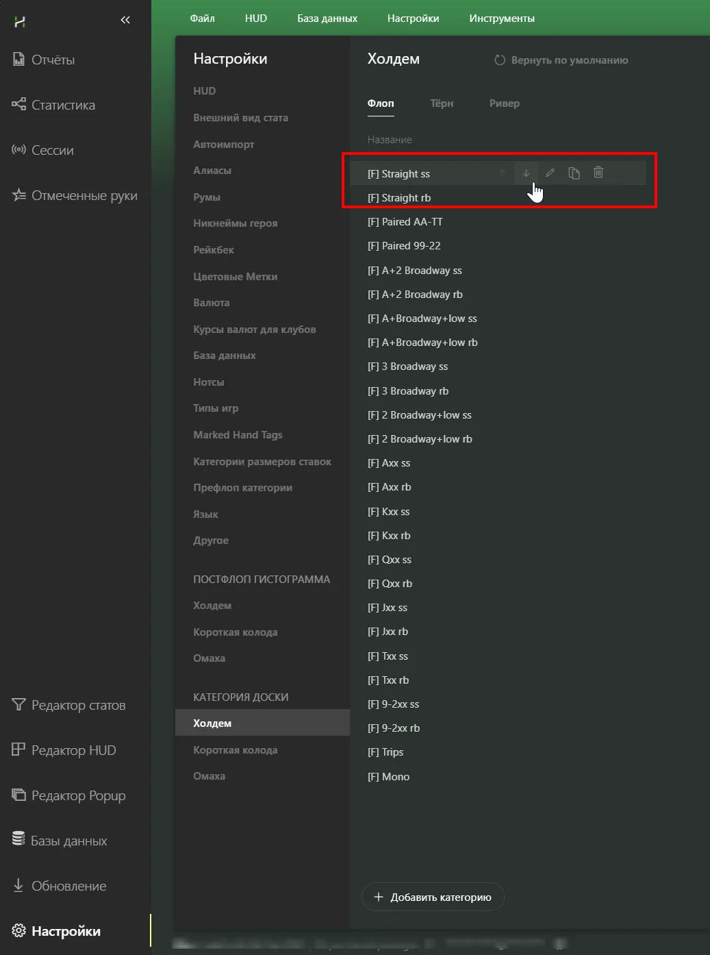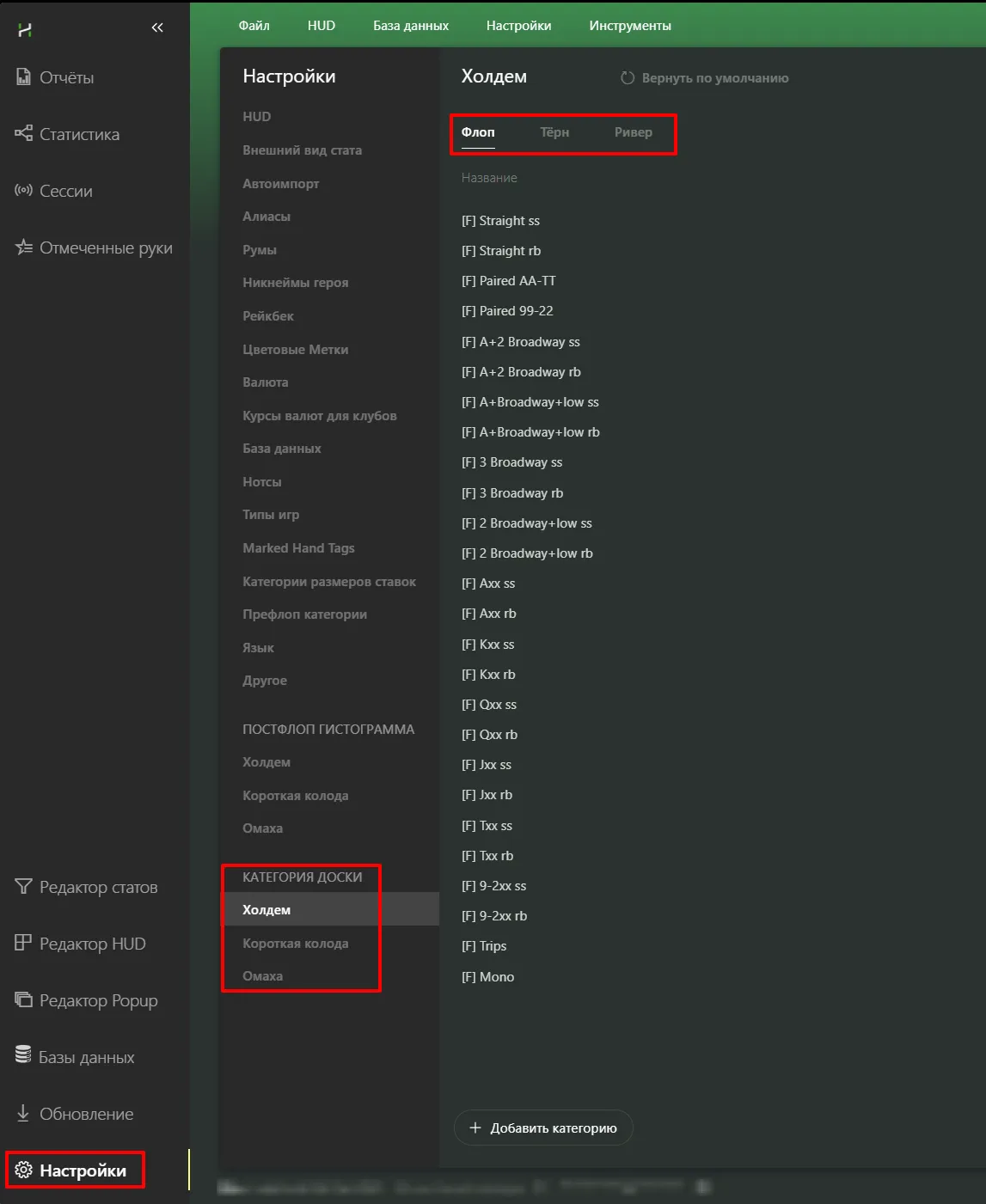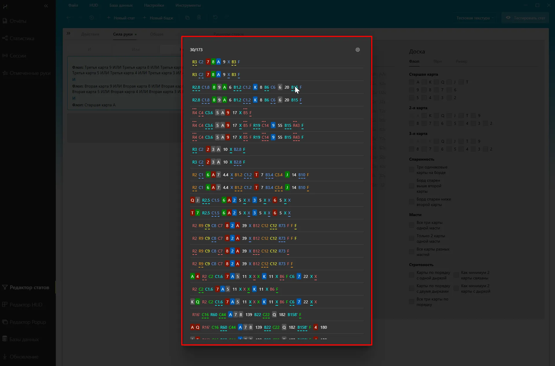 Добавили возможность фильтровать флоп, терн, ривер по каждой отдельной карте