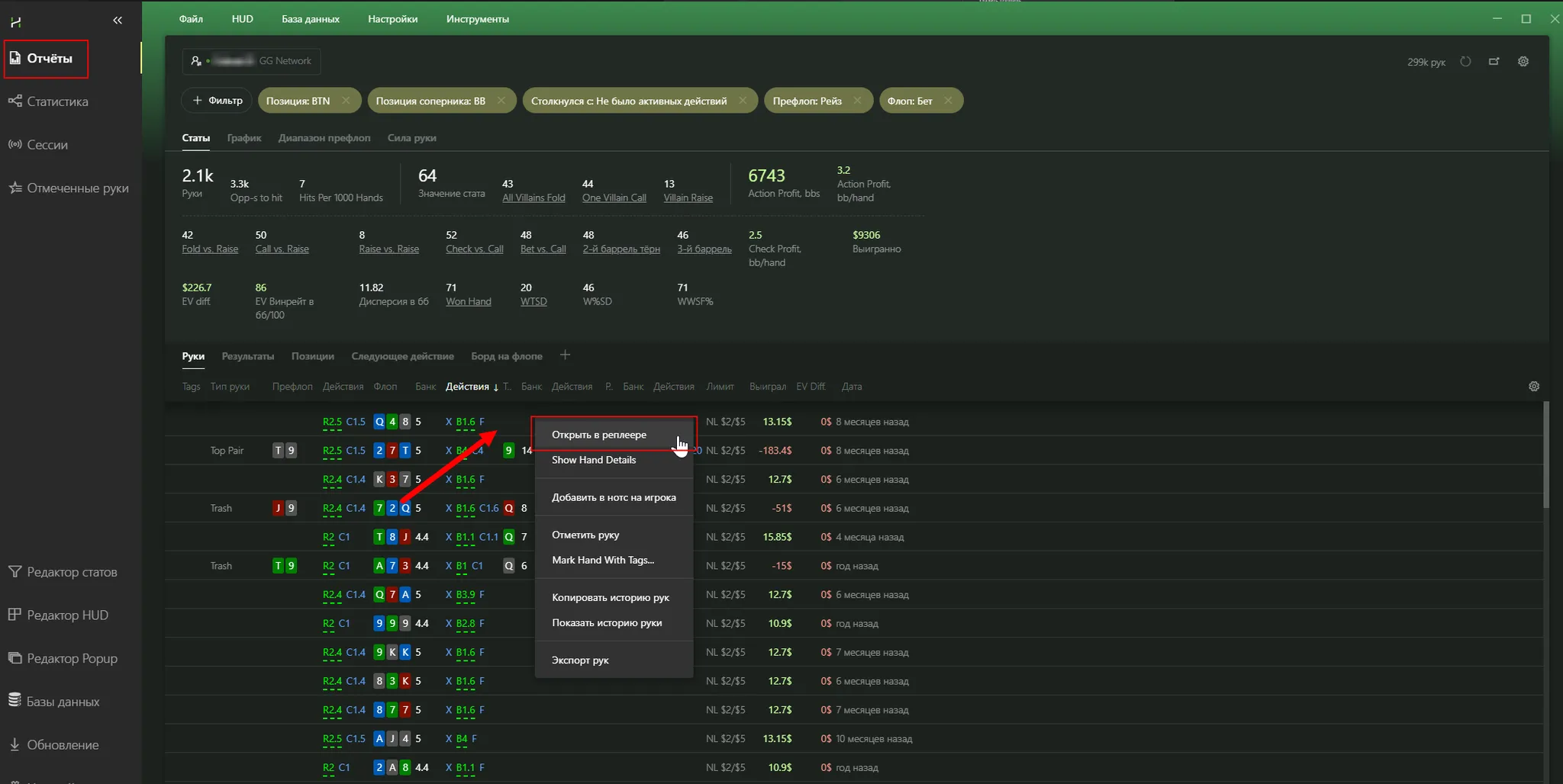 Вкладка отчеты в Hand2Note 3 использовалась большинство пользователей только для того, чтобы полюбоваться своими красивыми графиками (или поплакать из-за не очень красивых).