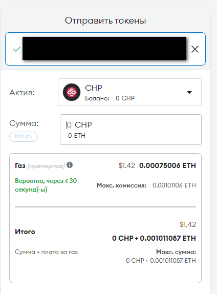 Теперь в нашем кошельке на MetaMask есть CHP, их нужно отправить на свой аккаунт в покерном руме.