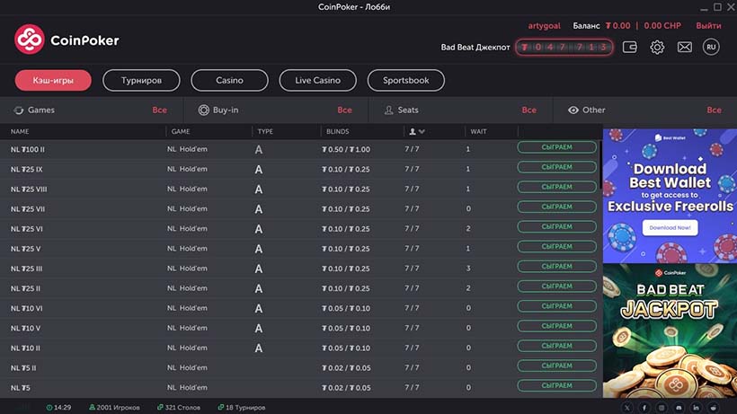 - Пополнение аккаунта на CoinPoker со своего персонального кошелька.