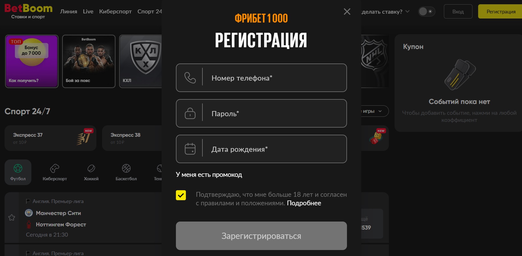 Инструкция по использованию промокода в БК
