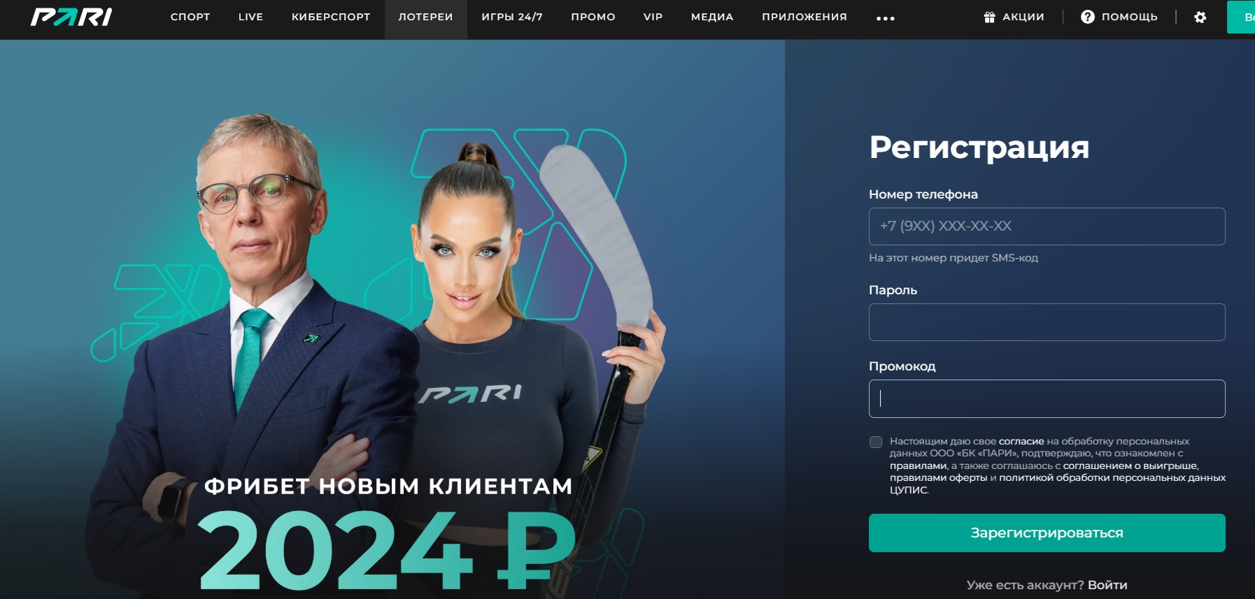 Промокод при регистрации