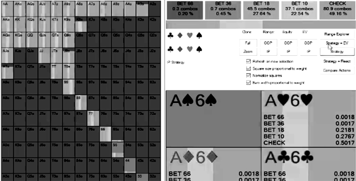По сути, в этом и есть суть солвера: он показывает, что делают оба игрока со всеми руками из своих диапазонов.