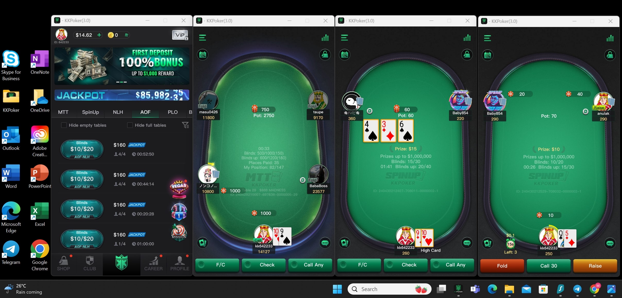 Главное отличие мобильного приложения и ПК-клиента KKPoker заключается в мультитейблинге — игрокам на ПК он доступен полноценно с запуском игровых столов в разных окнах, а не посредством переключения между столами кликами по иконкам.