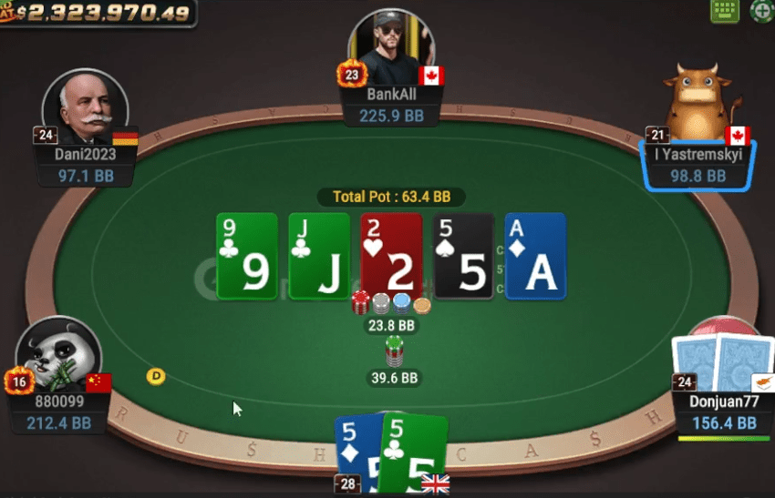 Коллирует только рег на HJ, ривером выходит туз, не закрывающий никакие дрова. Теперь у меня отличная возможность — влепить крупный овербет!