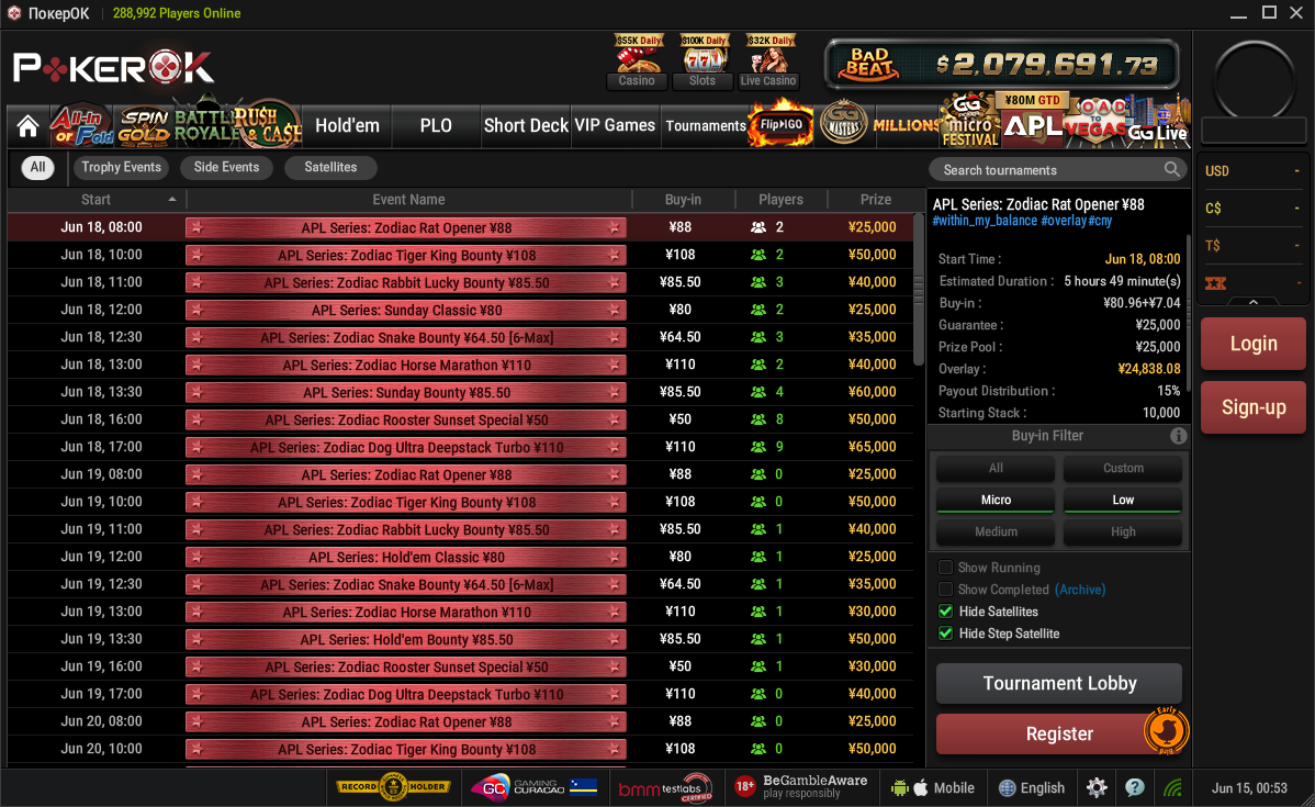 С полным расписанием серии APL можно ознакомиться в клиенте ПокерОК в одноименной вкладке, а на нашем сайте далее вы сможете ознакомиться с расписанием трофейных ивентов: