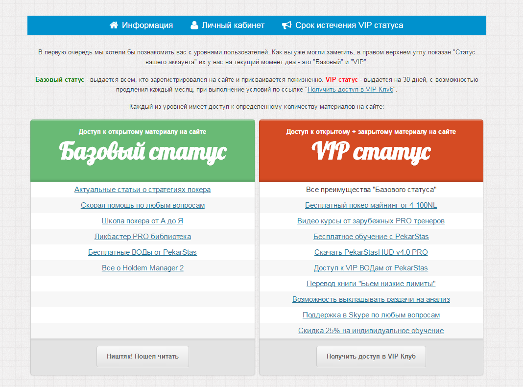 Мы так же постарались упростить вашу навигацию по сайту из личного кабинета с описанием статусов на сайте и в какие разделы сайта открыт доступ для определенного уровня пользователей. Все ссылки в личном кабинете кликабельны, таким образом можно сразу попасть в любой необходимый вам раздел на сайте.