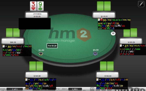 Анализ наших соперников следует начинать с момента начала раздачи, и, как по мне, изучение статов наших соперников – это дело куда более важное, нежели изучение происходящего вокруг ради ридов. Первый стат, на который я смотрю – это bb/100. Мне хочется знать, кто из моих оппонентов выигрывает, а кто проигрывает. Я понимаю, что практически все игроки внимательно относятся к выбору стола для игры, но когда я сажусь играть с фишом, я хочу знать, где он находится.