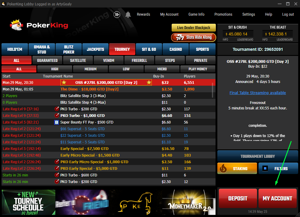 - Залогиниться в клиенте PokerKing