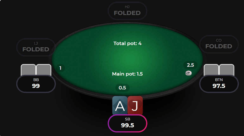 Именно поэтому большинство топ-регов рекомендуют стратегию 3-бет-онли на SB в играх без анте.