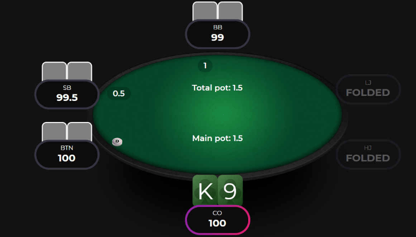 После того как ваш оппонент сфолдил в предыдущей раздаче, вам раздали на BTN. Ваши действия?