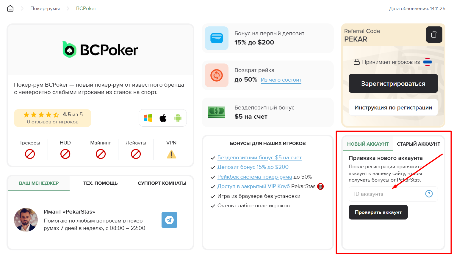 - Зарегистрируйтесь на BCPoker от сайта PekarStas.