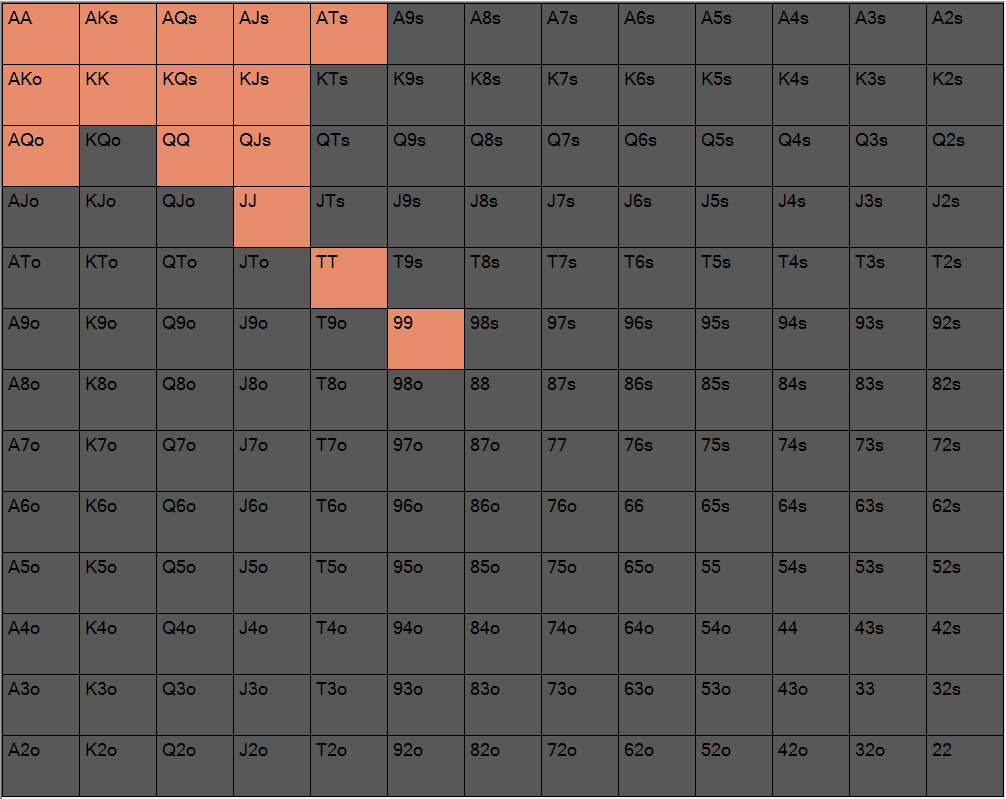 Итоговая оптимальная линия — 3-бетить чаще линейным диапазоном, вот так: