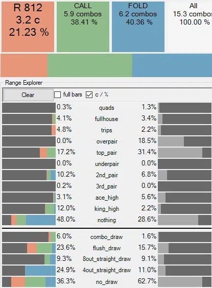 Что же конкретно советует солвер в качестве неэксплойтируемой стратегии в данном споте?