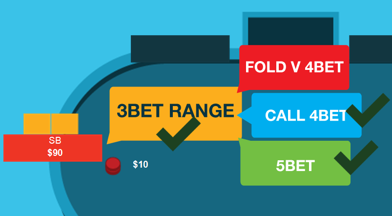 Конечно, если баттон будет 3-бетить и продолжать в ответ на наш 4-бет с диапазоном, который мы доминируем (в идеале включающий смесь блефов и вторых лучших рук типа TT и 99), то мы с большей охотой будем 4-бетить его на вэлью. А если же наш 4-бет будет только превращать нашу руку в блеф, а оппонент не выкинет ничего из QQ+/AK, то в таком случае нам нужно выбирать между коллом и фолдом. Какой вариант выбрать, это конечно спорный вопрос, но по мере улучшения ваших навыков чтения рук, правильное решение будет становиться для вас намного прозрачнее!