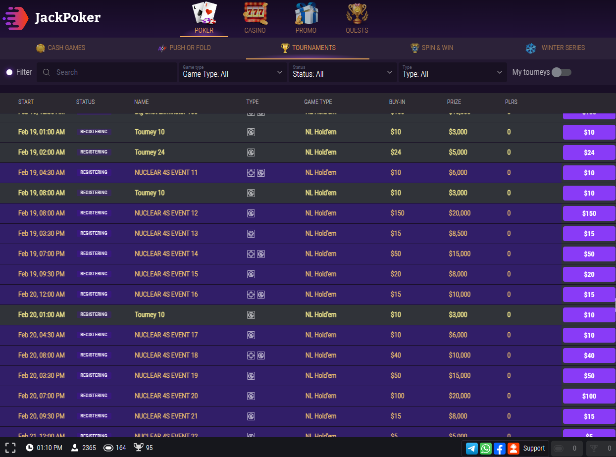 С полным расписанием Nuclear 4s можно ознакомиться в клиенте JackPoker или же сделать это далее на нашем сайте: