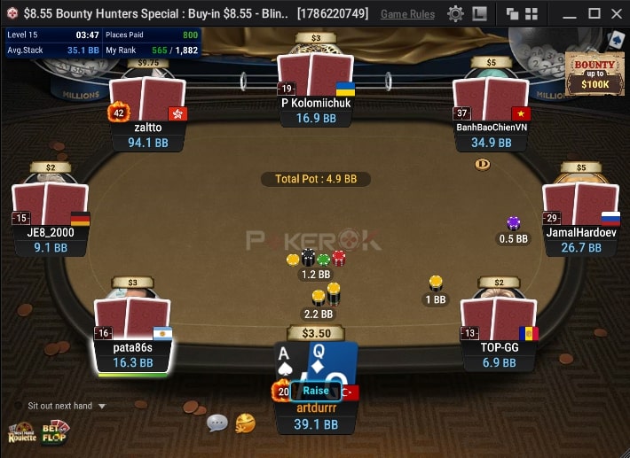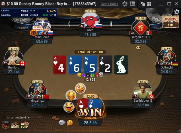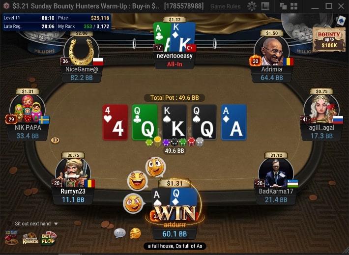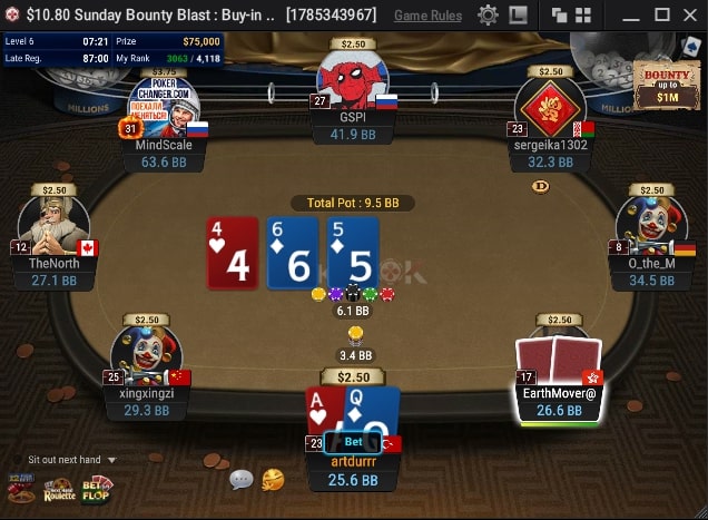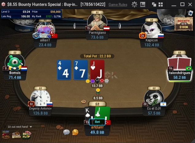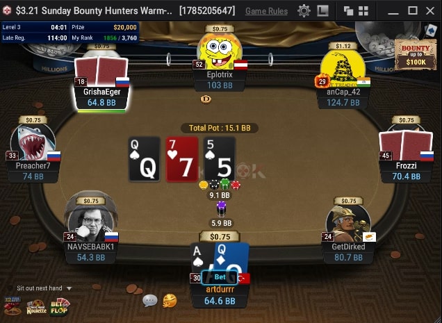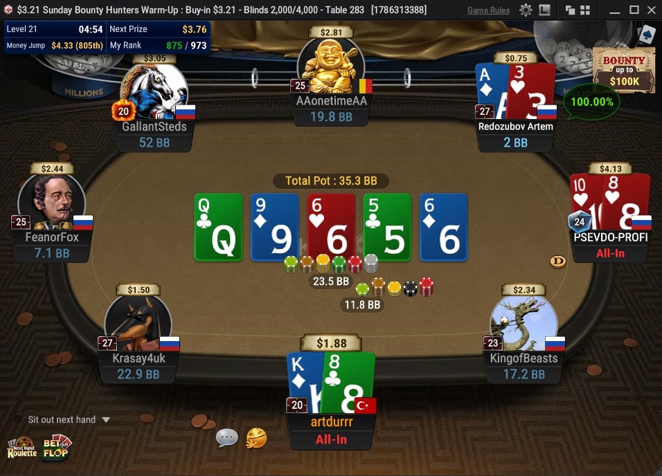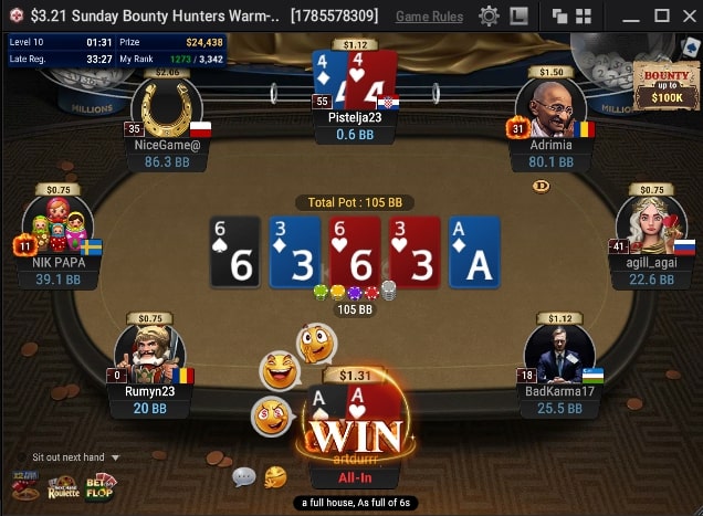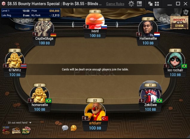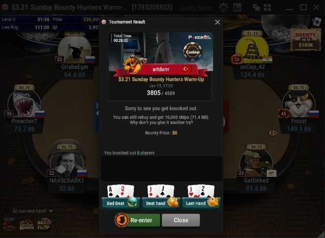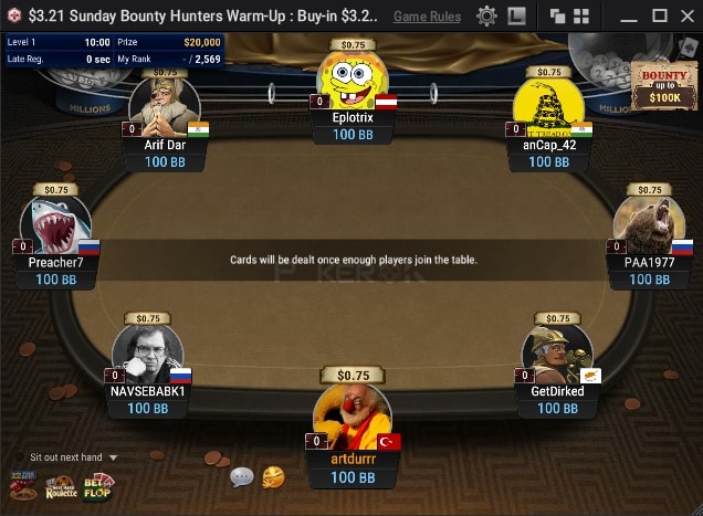 Четвертым турниром в моей воскресной загрузке на старте серии Mini Million$ был ивент $3.21 Sunday Bounty Hunters Warm-Up.