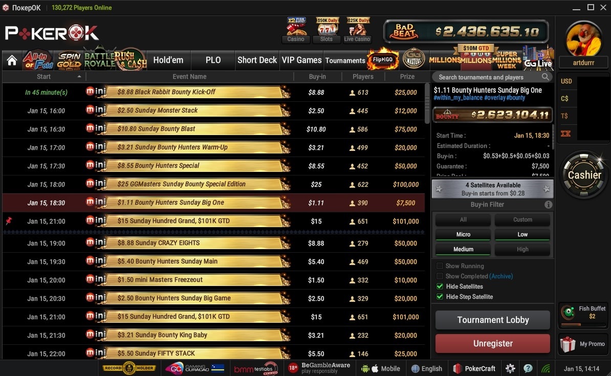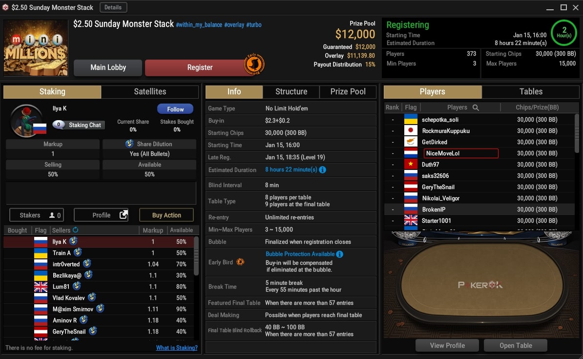 Пока готовил анонс, попутно изучал расписание турниров фестиваля. Как и большинство турнирных серий в онлайне, Mini Million$ стартовала в воскресенье, 15 января, и в день старта было запланировано много крутых событий.