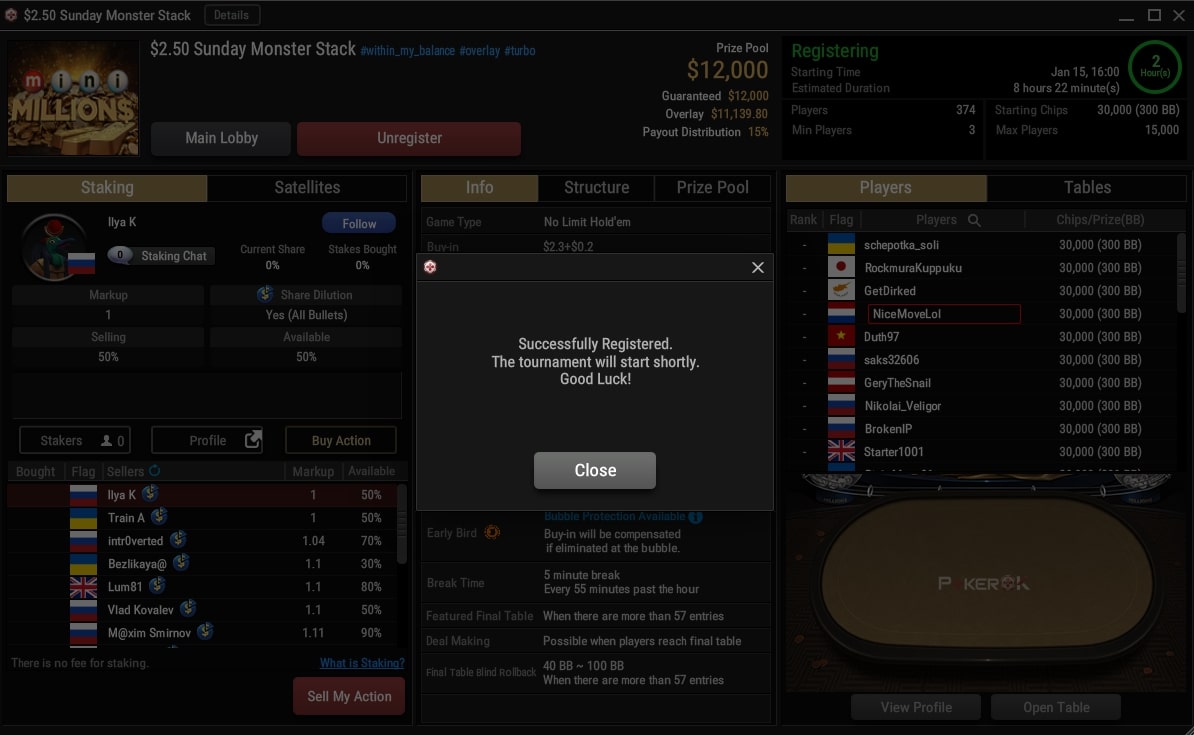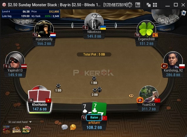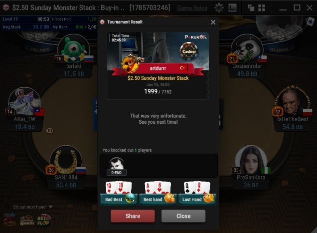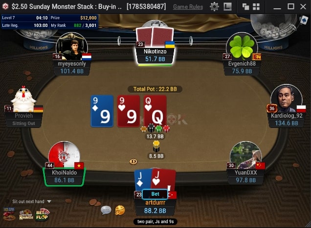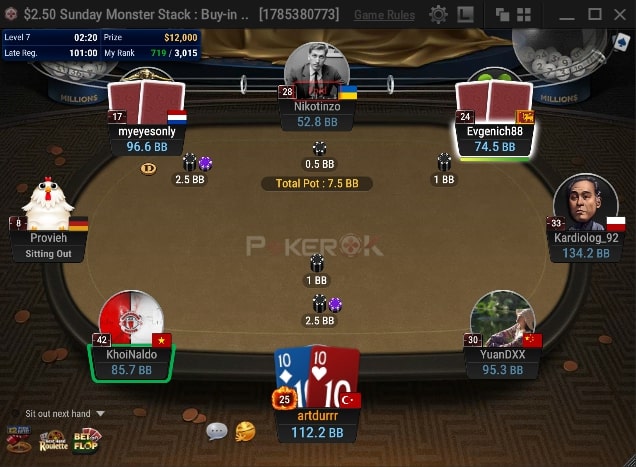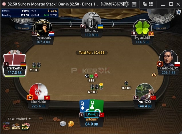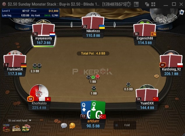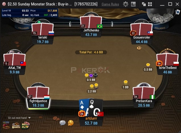 В 16:00 по МСК стартовал следующий турнир из моей загрузки, $2.50 Sunday Monster Stack.