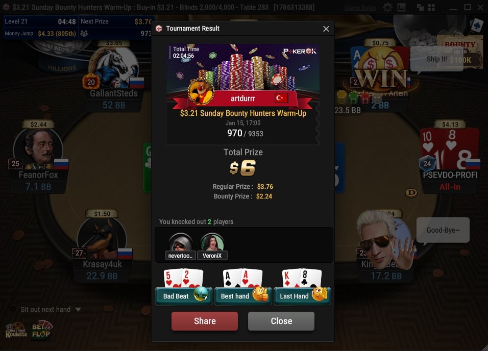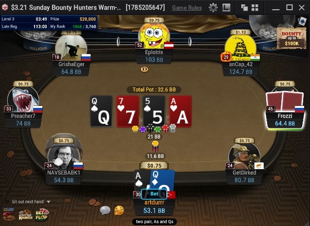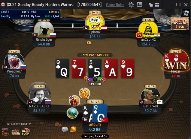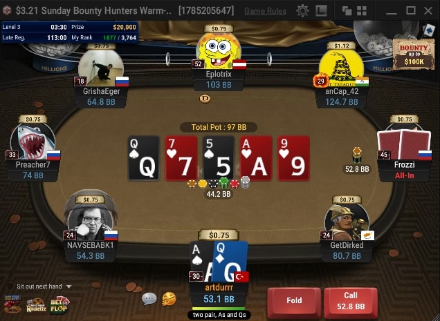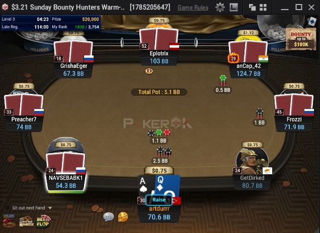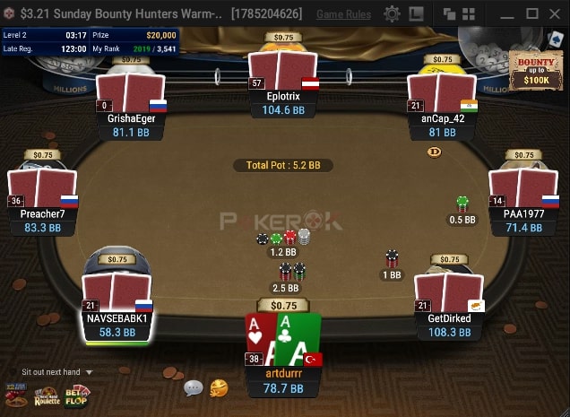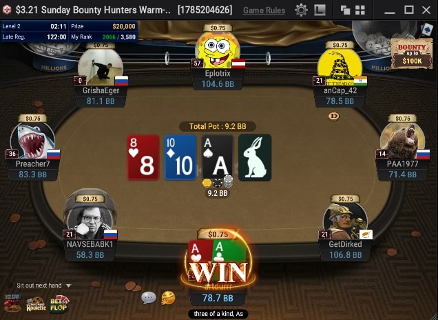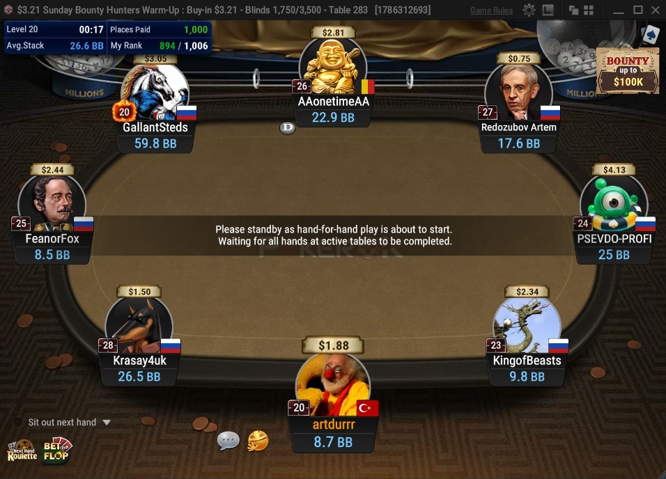 Турнир $3.21 Sunday Bounty Hunters Warm-Up – обзор экшена