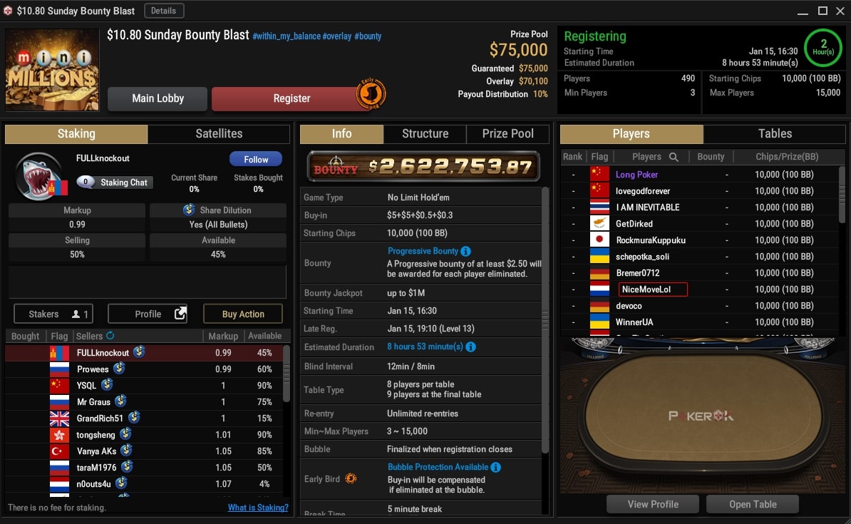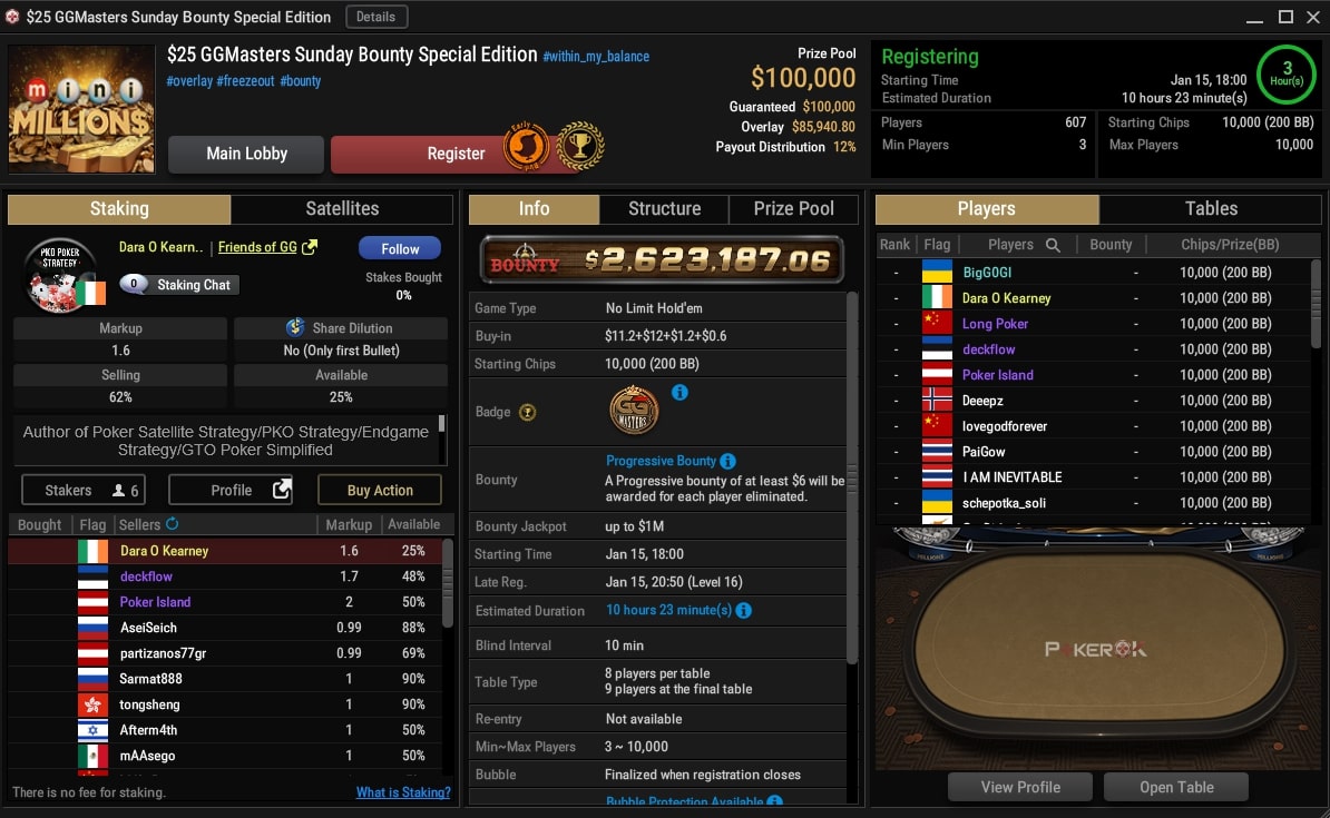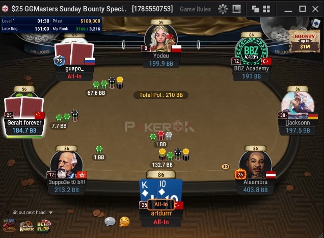 Хайлайтом первого воскресенья Mini Million$ на ПокерОК и моей загрузки был турнир $25 GGMasters Bounty Special Edition.
