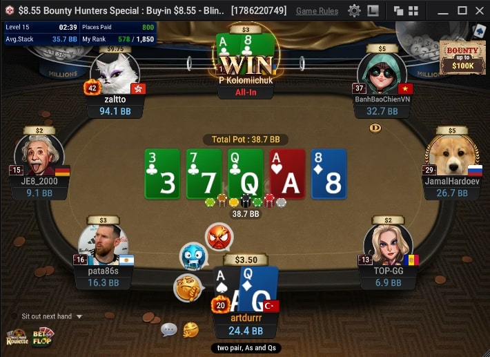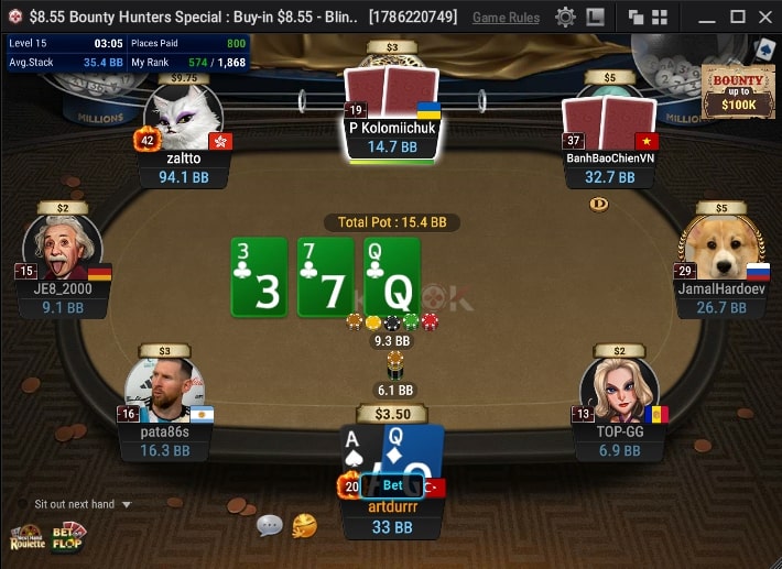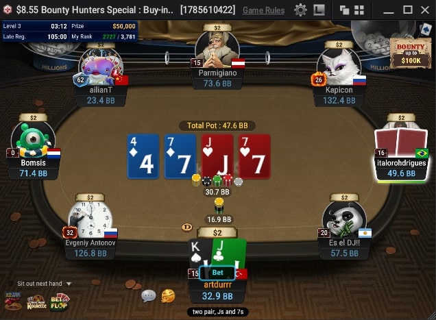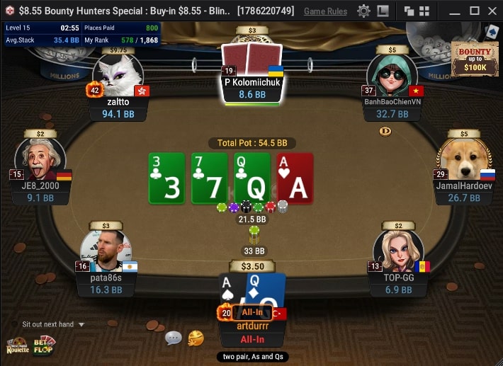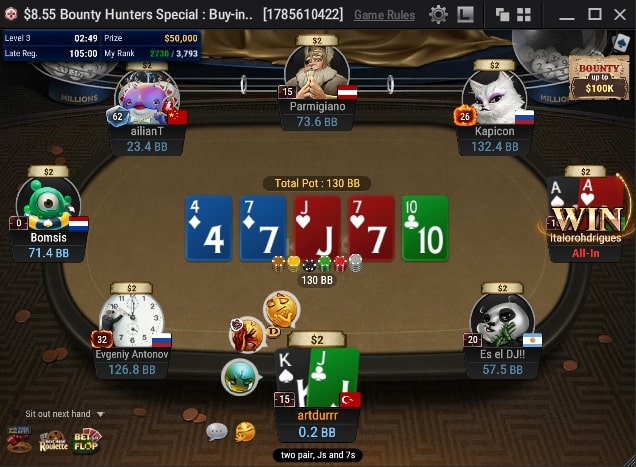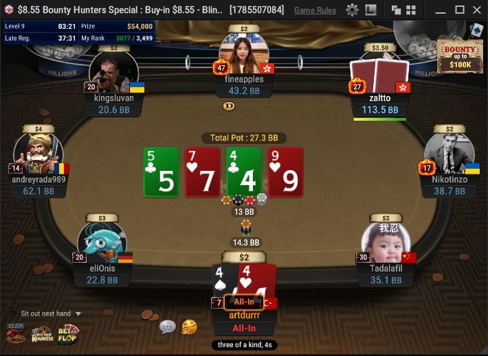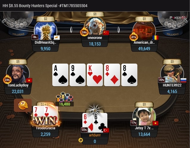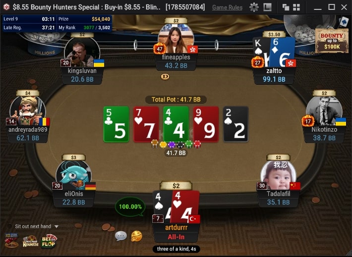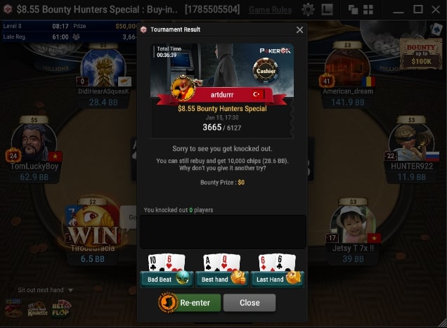 Пятый и предпоследний турнир из загрузки, ивент $8.55 Bounty Hunters Special.