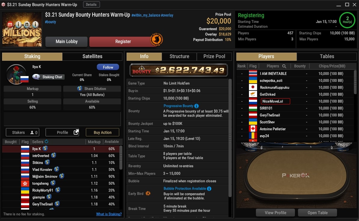 $3.21 Sunday Bounty Hunters Warm-Up – один бай-ин $3.21, одно ре-энтри $3.21