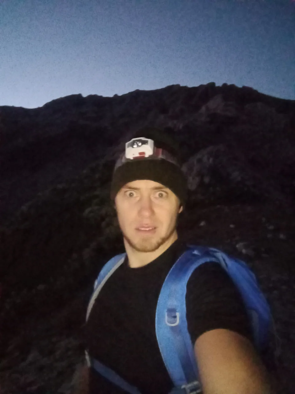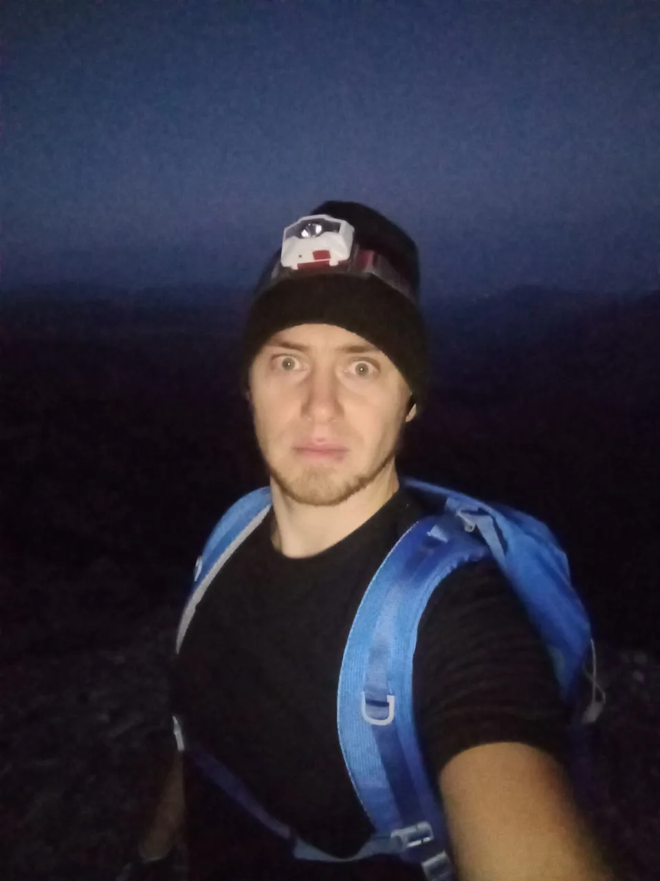 С началом выхода на основную, - и самую длинную, - часть маршрута идти стало намного легче, приятнее и веселее. Сбоку дул прохладный ветерок, путь немного освещали звёзды, а тропа была практически везде: генеральное направление наверх - иди себе спокойно, ты не потеряешься. А поэтому удовольствия в подъёме стало много больше, чем было в первой трети восхождения - когда я просто бурил вверх через сыпуху и кусты.