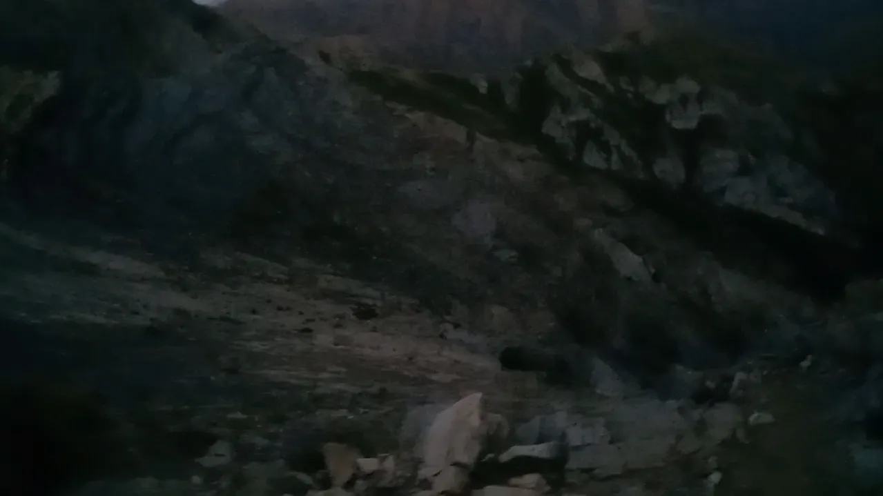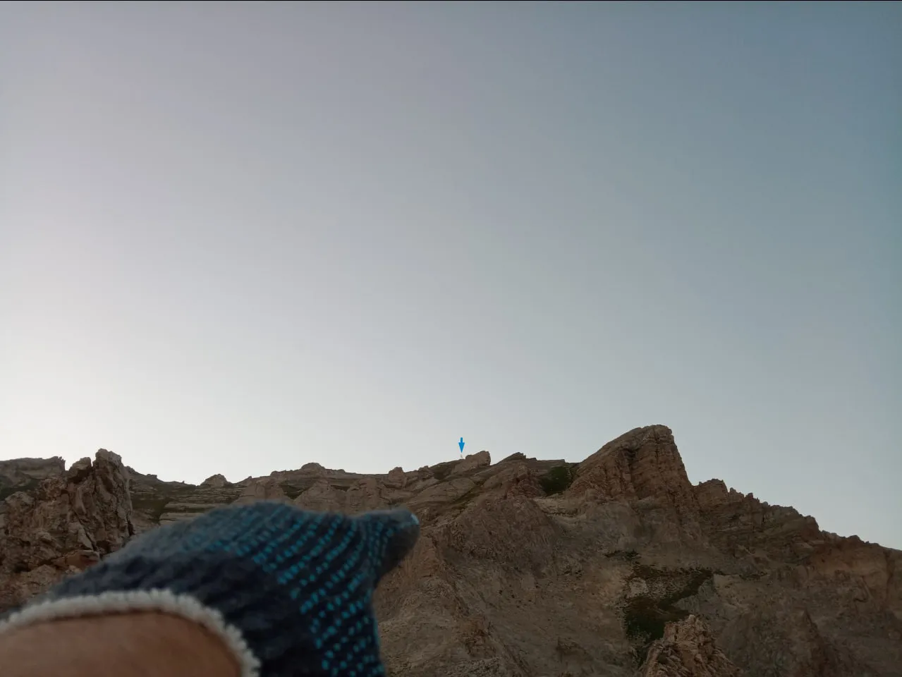 Надо было дойти до очередной скалы и обойти её по бровке справа. И не сорваться вниз, потому что было бы куда и как.😱 Последняя, - смазанная фотка, - как раз про это.