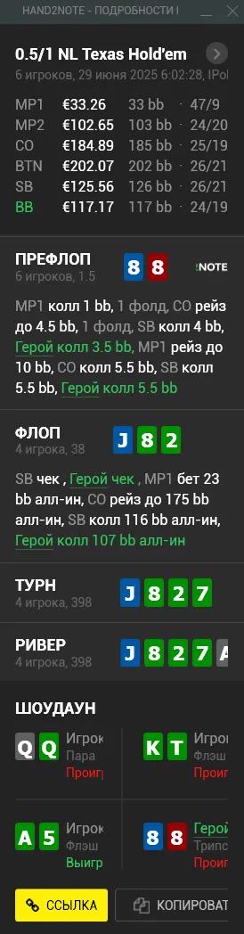 №4. 4way all-in с сетом в флопе и трагичная развязка. Лаконичное название скриншота - pizdec