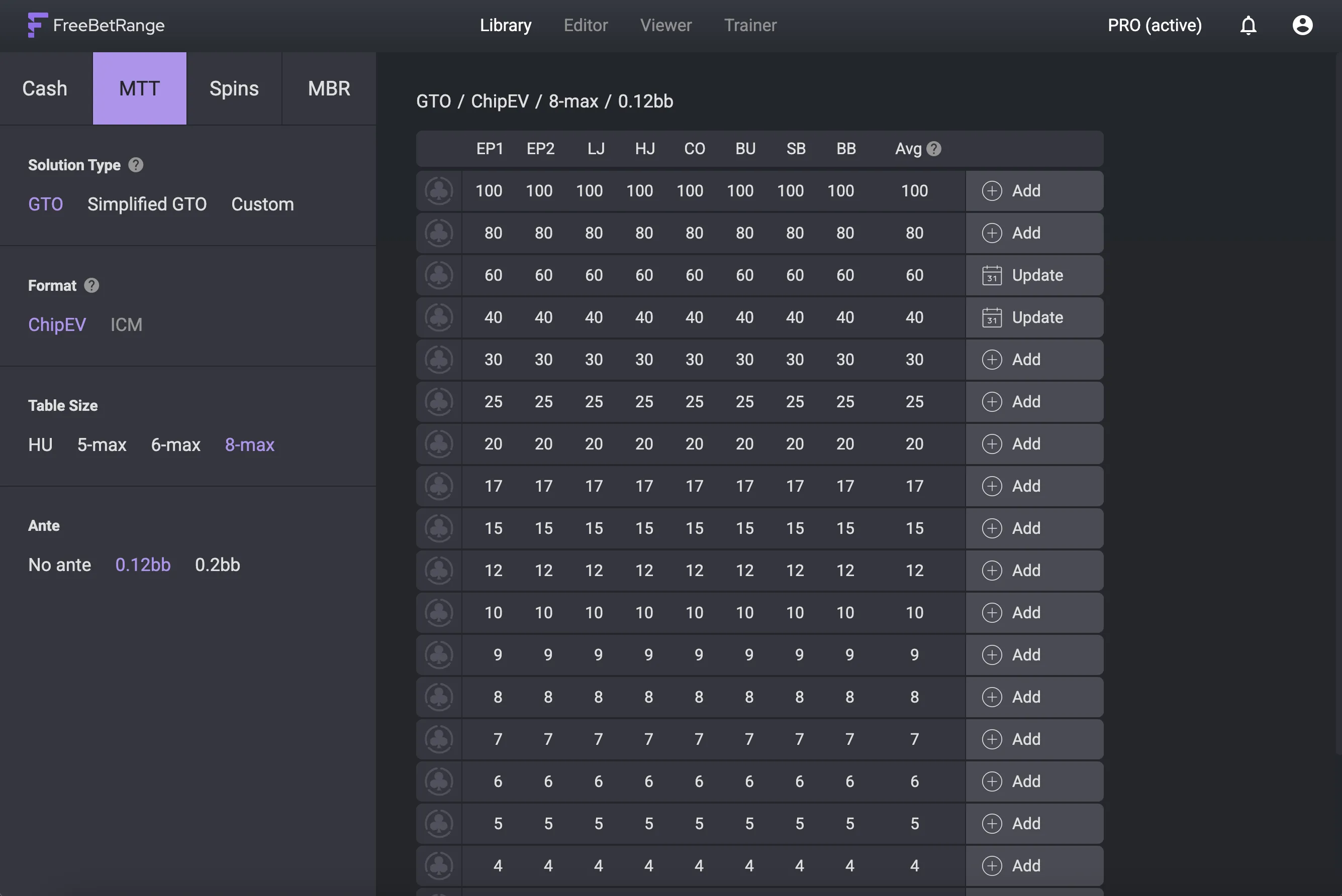 Можно перезапустить мастер в любой момент и добавить решения для других форматов. Новые диапазоны и упражнения будут добавлены к вашим существующим, что позволит вам эффективно изучать как кэш-игры, так и турниры в одном аккаунте.