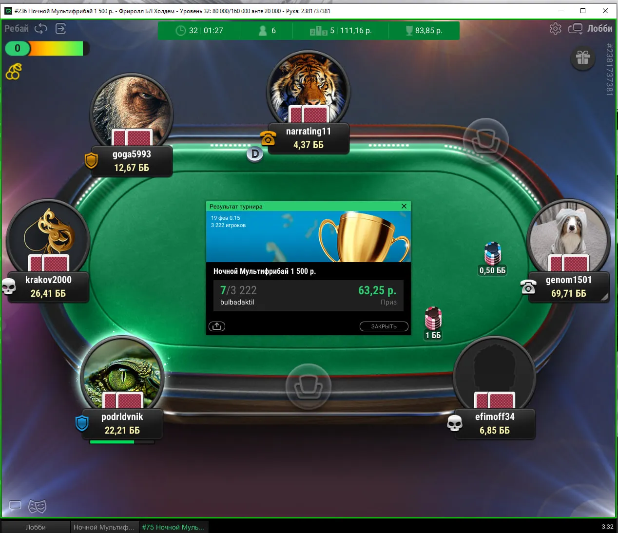 Как рассказал Bulbadaktil, все деньги он вывел. В румах остались только билеты, турнирные доллары и какие-то копейки. Сейчас Иван планирует взять отдых от катки, а затем снова будет раскручивать банкролл, но уже без каких-либо марафонов.