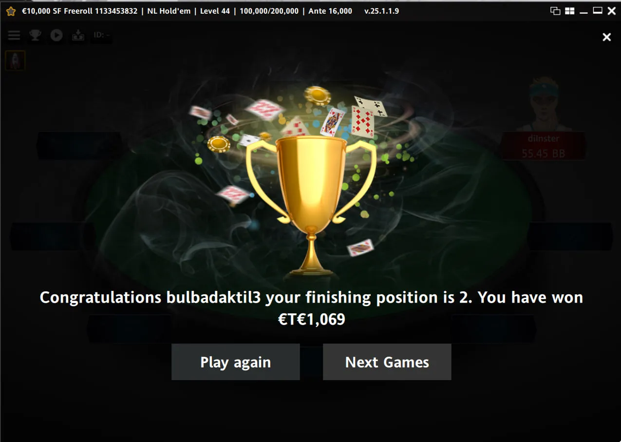 Свое +EV он старался получить любым способом. Например, выводил часть средств, чтобы сделать депозит в другой рум, который выдавал билеты за пополнение счета. В мае банкролл на какое-то время преодолел отметку в $3,000. То есть треть дистанции Bulbadaktil сумел пройти за три месяца. Правда, потом пошли минусовые недели. На конец июля банкролл оказался на отметке $2,200. Но и тут помогли фрироллы. В одном из них Иван залутал четырехзнак.