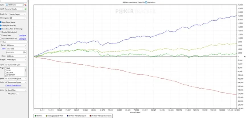 Уходящий год – традиционное время, чтобы подвести итоги. Игроки в покер тут не исключение: ближайшие пару недель нас ждет много подобных отчетов. Увы, не все они радостные. Например, Nikitanikus последние два года стабильно зарабатывал покером по +$10,000. Но 2025-й стал для него настоящей проверкой на прочность: за столами почти ничего не удалось нажить, да еще наложились проблемы со здоровьем.