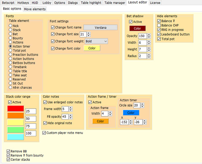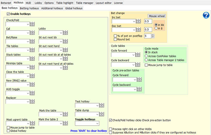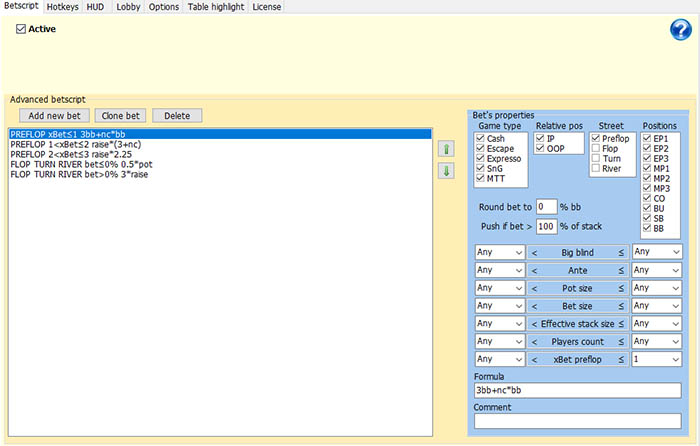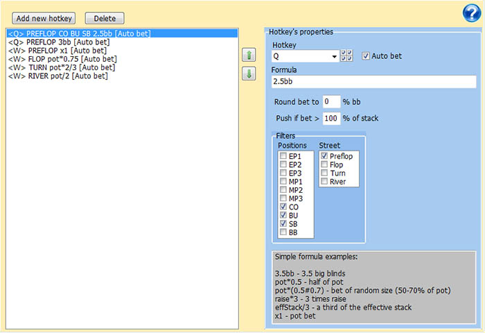 - Горячие клавиши с возможностью настройки формул расчета ставок;